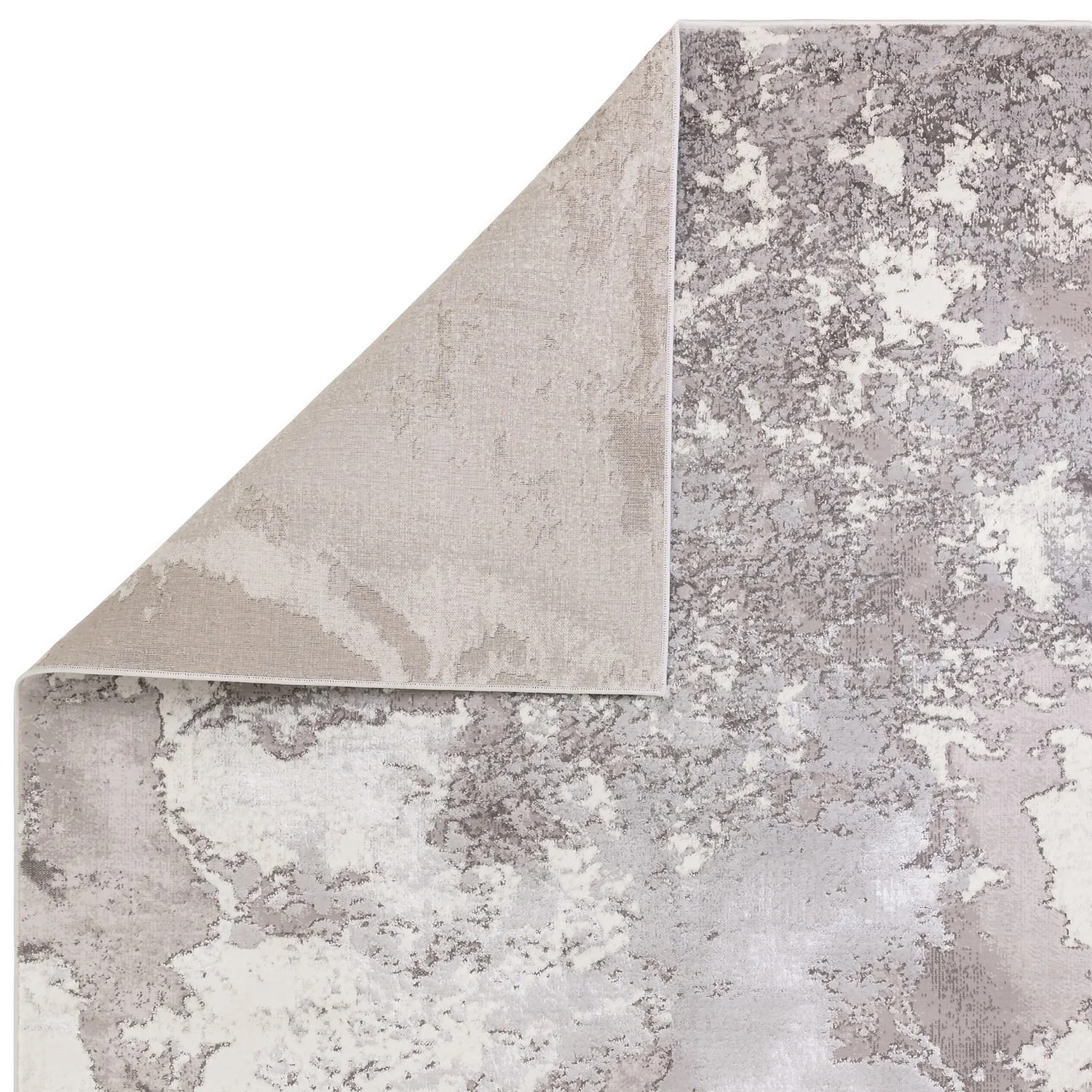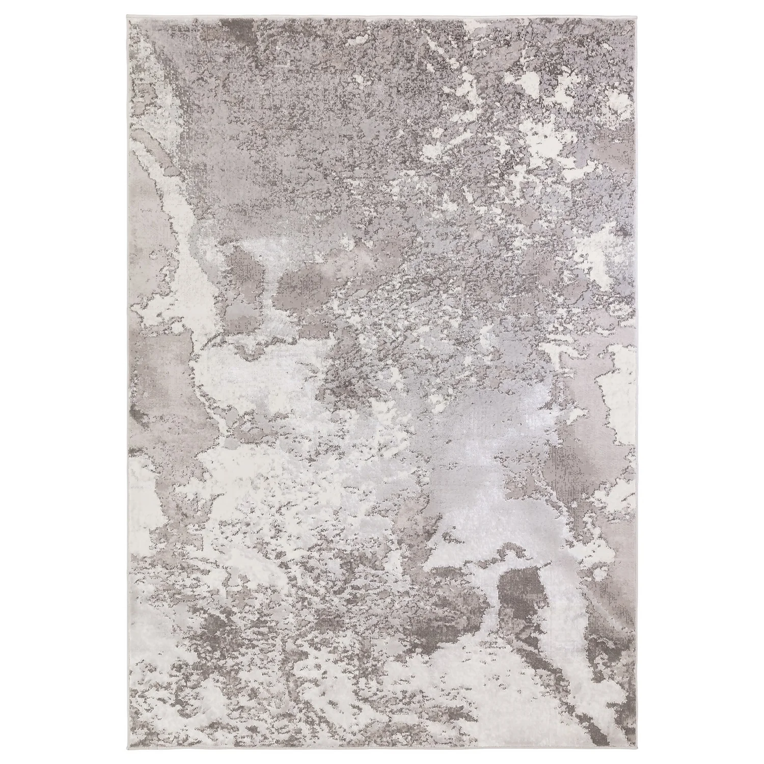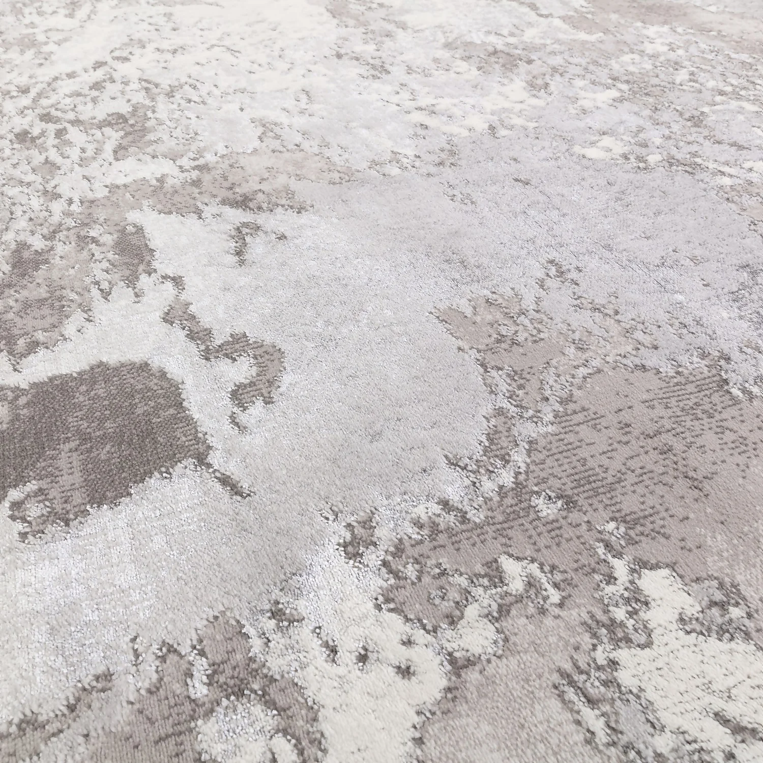 Lustrous pile rug with an etched cloud giving a metallic effect.