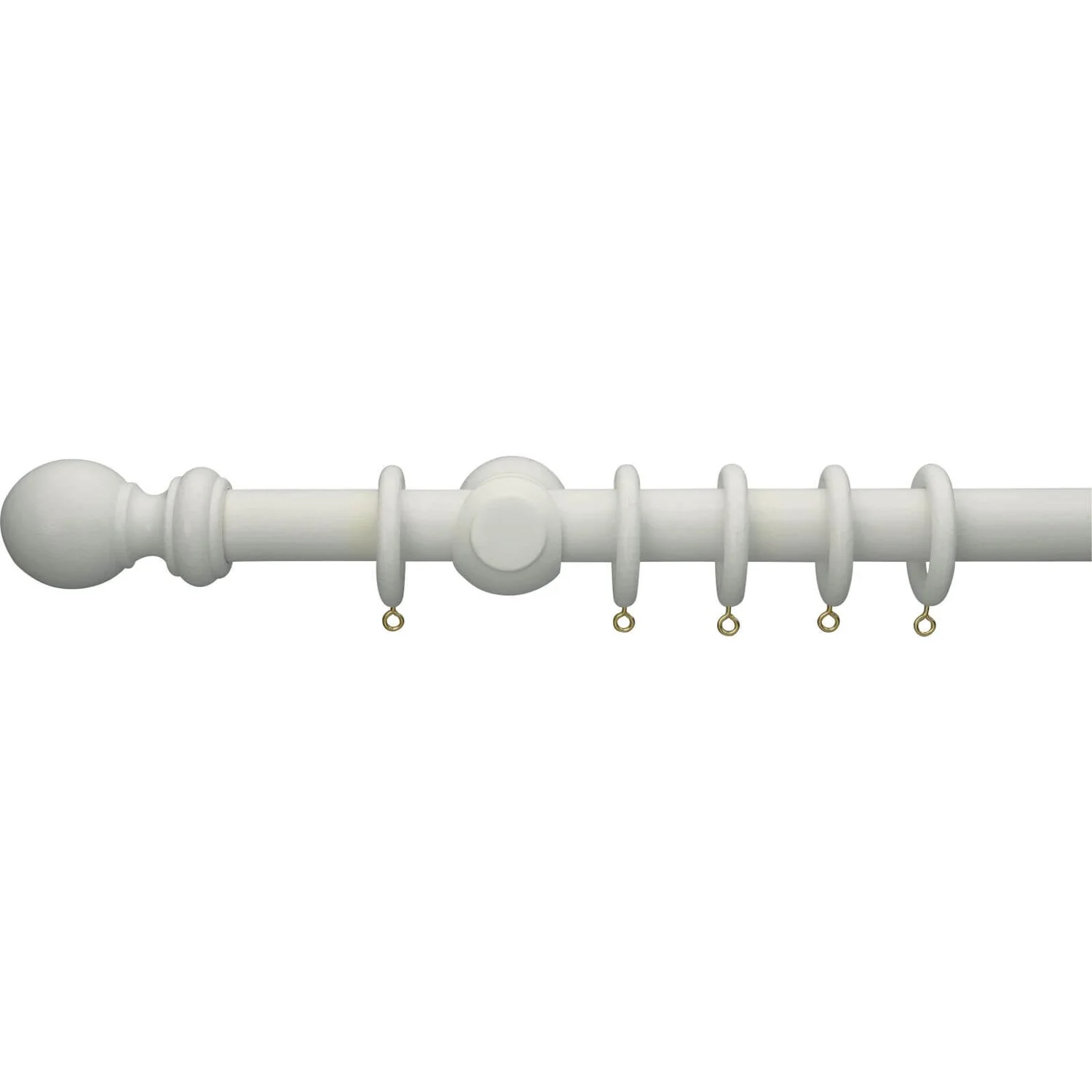 White Wooden Curtain Pole & Ball Finial – 1.2m